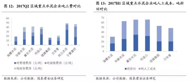水泥板塊區(qū)域及區(qū)域間企業(yè)的盈利能力分化,方差達到歷史最大。17年上半年,水泥價格在需求維持平穩(wěn)狀態(tài)下出現(xiàn)大幅抬升,帶動整體水泥板塊盈利明顯回升。但是從半年報業(yè)績來看,盈利確出現(xiàn)分化,在非需求擴張周期中的漲價,區(qū)域之間和企業(yè)之間其實處于不對等的博弈狀態(tài),在錯峰停產(chǎn)及停產(chǎn)停窯的博弈中,由于水泥的重資產(chǎn)特征,產(chǎn)能利用率高低將直接導致噸折舊、財務成本、人工成本等上升,侵蝕利潤,導致水泥企業(yè)盈利能力出現(xiàn)分化。我們認為華東、華南板塊產(chǎn)能利用率明顯好于華北、東北及西北,且海螺水泥等龍頭的競爭優(yōu)勢顯著擴大。