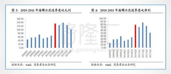 首先,2010年的旺季拉閘限電,對海螺水泥產(chǎn)生了明顯的利潤彈性。2010年第四季度,海螺水泥的噸毛利是達到了133元/噸,同比增長60元/噸,環(huán)比增長66元/噸;噸凈利則是達到78元/噸,同比增長39元/噸,環(huán)比增長43元/噸。