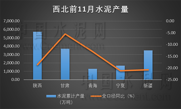 今年由于地方財(cái)政去杠桿導(dǎo)致基建開(kāi)工率底,進(jìn)而導(dǎo)致水泥需求下滑明顯并不止陜西一省。據(jù)統(tǒng)計(jì),今年前11月包括青海、新疆、寧夏、甘肅在內(nèi)的所有西北省份水泥需求都下跌明顯,除甘肅外,其余西北各省水泥需求下滑都超過(guò)15%。