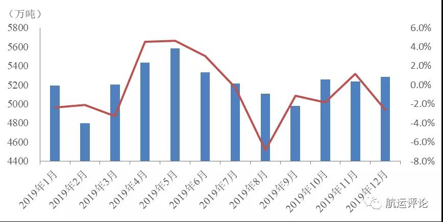 圖5 2019年韓國港口貨物吞吐量及增速