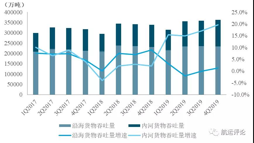 內(nèi)需提振中國內(nèi)河港口貨物吞吐量大幅增長2019年,中國面臨的經(jīng)貿(mào)環(huán)境不容樂觀,GDP實際增速預計為6.1%,為1992年有統(tǒng)計數(shù)據(jù)以來的年度最低值;外貿(mào)進出口總值31.54萬億元人民幣,同比增長3.4%,與去年9.7%的增速相比放緩明顯。但中國國內(nèi)需求穩(wěn)步擴大,前11個月中國社會消費品零售總額同比增長8%,中國消費正在高基數(shù)的基礎(chǔ)上加快增長。在此背景下,中國港口貨物吞吐量總體保持較快增長,內(nèi)需提振內(nèi)河港口貨物吞吐量增長強勁,成為推動中國港口貨物吞吐量增長的主要動力。