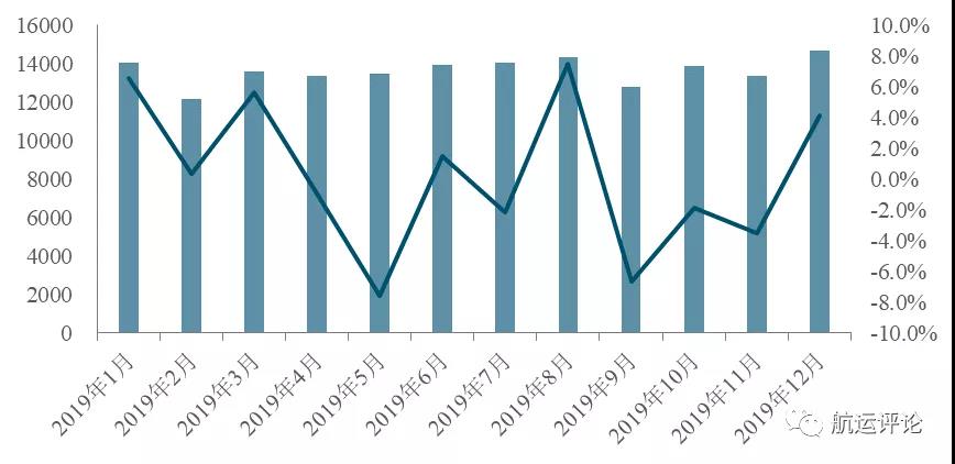 數(shù)據(jù)來源:MPA圖2 2019年新加坡港口貨物吞吐量及增速