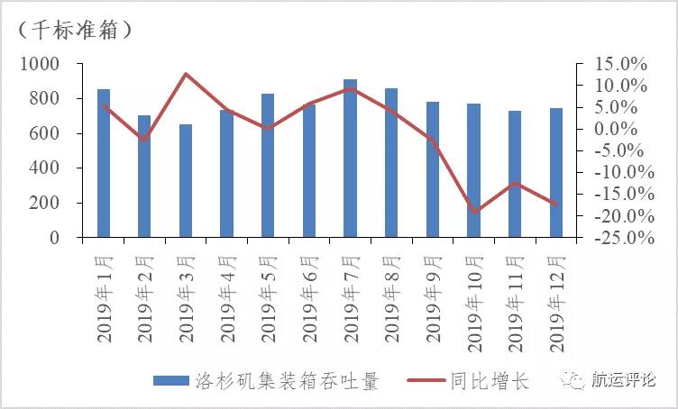 圖8 2019年洛杉磯集裝箱吞吐量及增速