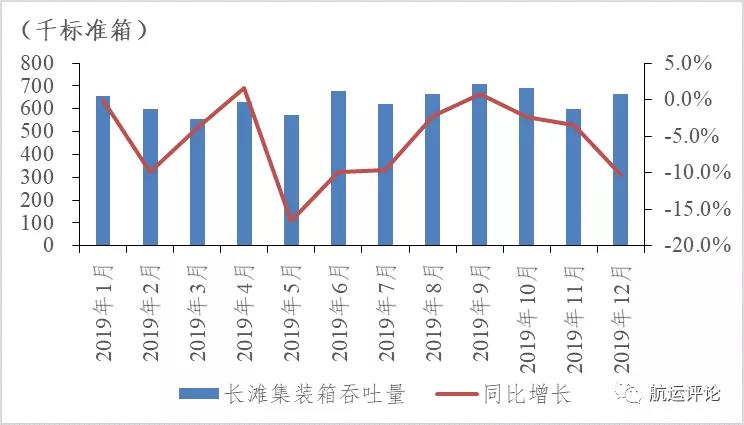 圖9 2019年長灘港集裝箱吞吐量及增速