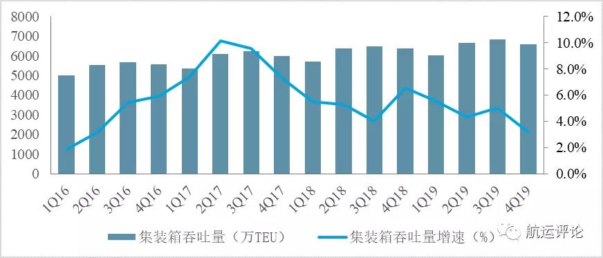 圖10 2016年-2019年中國港口集裝箱吞吐量增長情況
