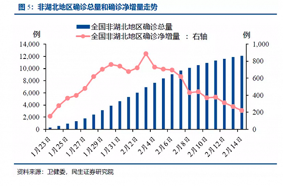 非湖北地區(qū)新增確診病例有所下降。從2月4日開始,全國非湖北地區(qū)新增確診病例逐漸下降,從2月3日高點(diǎn)的888例下降至2月14日的221例,防疫工作取得一定進(jìn)展。