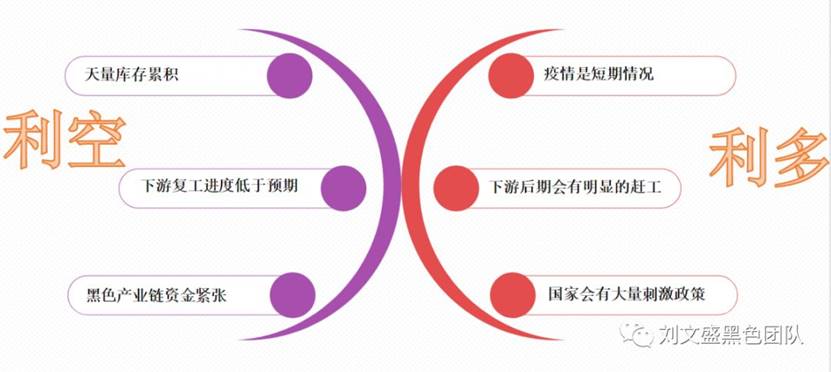 整體邏輯還是維持偏空看待,在預(yù)期交易之后,實(shí)際復(fù)工開(kāi)始階段,首先的壓力將來(lái)自于高企的庫(kù)存變現(xiàn)壓力,以及產(chǎn)業(yè)鏈自身的資金壓力,那么高估值的黑色市場(chǎng)出現(xiàn)回調(diào)的概率還是較大的。所以說(shuō)真正的下跌可能真要等到復(fù)工逐步開(kāi)始以后了。