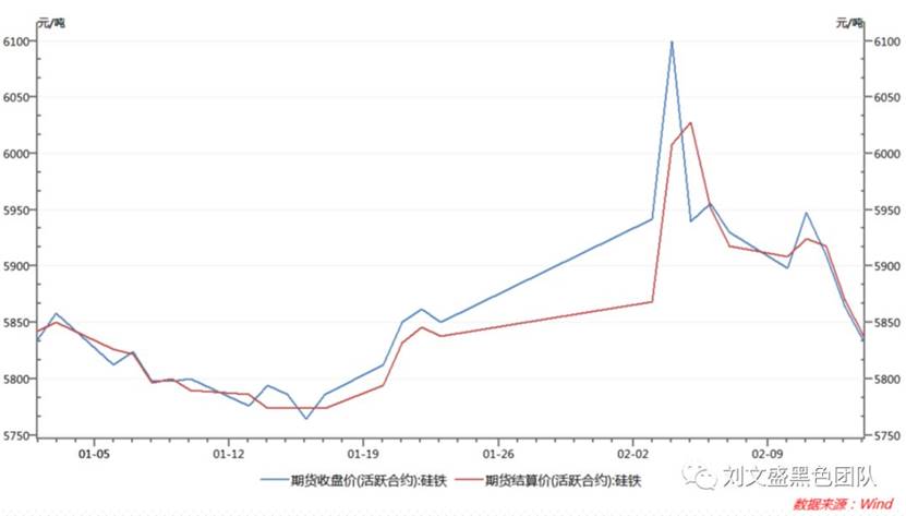 合金經(jīng)歷了運(yùn)輸環(huán)節(jié)的高溢價(jià)之后,無(wú)論是硅鐵和硅錳都較春節(jié)前收盤(pán)價(jià)格大幅上漲,但是隨著估值高企,在后期成材累庫(kù)的壓力下就開(kāi)始迅速的回調(diào),目前已經(jīng)跌至春節(jié)收盤(pán)價(jià)格下方的位置,未來(lái)硅錳由于鋼廠需求減弱,仍有下行預(yù)期,但是整體空間已不大。