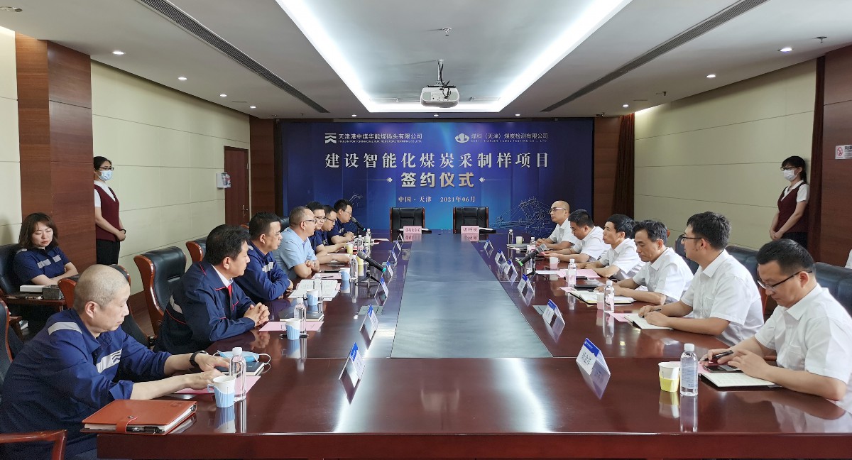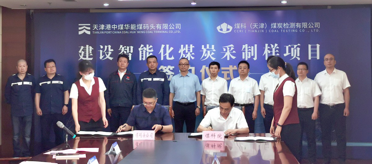 6月7日,煤科院和天津港股份有限公司在天津港舉行智能化煤炭采制樣項目簽約儀式。煤科院總會計師楊慶功,企業(yè)管理部主任高宇,檢測分院院長方全國,天津港股份有限公司副總裁吳強、天津港中煤華能煤碼頭有限公司黨委書記高旭、總經(jīng)理孫超、副總經(jīng)理關坤,國能銷售集團有限公司天津分公司總經(jīng)理李立超,以及煤科院檢測分院和天津港煤碼頭公司相關部門負責人參加簽字儀式。