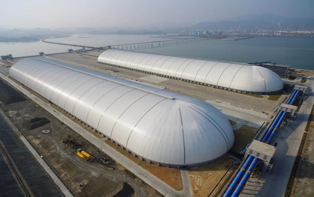 最具特色的是兩座“長(zhǎng)500米、寬118米、高42米”的全亞洲最大的環(huán)保鋼結(jié)構(gòu)條形封閉煤倉(cāng),其創(chuàng)新性的設(shè)計(jì)榮獲2019年“中國(guó)鋼結(jié)構(gòu)金獎(jiǎng)”;葜蒈鯙趁禾扛鄣木G色發(fā)展以“一套海陸空三位一體的污染防治體系+光伏項(xiàng)目+碼頭岸電設(shè)施”為核心的三個(gè)“綠色法寶”。煤炭出入倉(cāng)封閉作業(yè)、皮帶機(jī)封閉式作業(yè)、多重除塵裝置三大保障,實(shí)現(xiàn)了防治煤灰、揚(yáng)塵污染。因地制宜布置了分布式光伏設(shè)備,年均可為港口提供清潔電能約597.2萬(wàn)kWh,節(jié)約標(biāo)準(zhǔn)煤約733.96噸/年。通過(guò)建設(shè)岸電設(shè)施及含油、含煤、生活三大污水處理站,基本實(shí)現(xiàn)了“零污染、零排放”,為構(gòu)建零碳港口建設(shè)示范標(biāo)桿注入綠色新動(dòng)能。