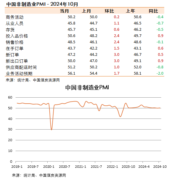 10月份,非制造業(yè)商務(wù)活動指數(shù)為50.2%,比上月上升0.2個百分點,回升至臨界點以上。