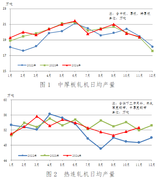 中厚板軋機(jī)11月份生產(chǎn)特厚板、中厚板581萬(wàn)噸,同比增加2萬(wàn)噸,上升0.4%,產(chǎn)量小幅回升;累計(jì)生產(chǎn)6750萬(wàn)噸,同比增加144萬(wàn)噸,上升2.2%。