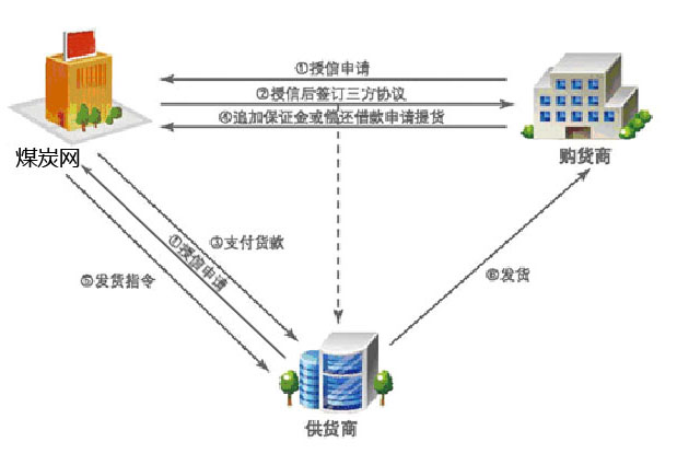 預(yù)付款(未來貨權(quán))融資業(yè)務(wù)是煤炭網(wǎng)以控制購貨商(借款人)向供貨商(收款人)購買的煤炭的提貨權(quán)為手段,向購貨商提供融資,用于支付供貨商貨款,由供貨商根據(jù)約定按煤炭網(wǎng)指令進(jìn)行發(fā)貨的業(yè)務(wù)。該業(yè)務(wù)需要煤炭網(wǎng)對供貨商授信評估,在評估合格的情況下,煤炭網(wǎng)可面向購貨商在該供貨商取得煤炭網(wǎng)授信金額的范圍內(nèi)做預(yù)付款業(yè)務(wù)。
